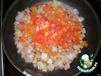 Мелко порубить сладкий перчик, добавить к луку, обжарить |