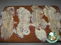 Куриное мясо в виде битков слегка отбиваем через кулек. |