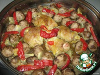 Описание: Очень красивое, ароматное блюдо. В нем у меня сочетаются куриные голени, приготовленные по принципу "кручеников" и шампиньоны по-болгарски, т. е целиком.