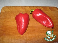 Берем два красивых болгарских перца, моем, чистим, нарезаем соломкой. |