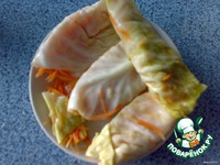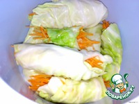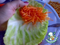 Когда капуста размягчится аккуратно снимаем листья. На каждый листик выкладываем немного моркови |