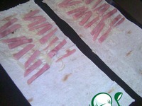Скручиваем лавашики в рулет и выкладываем в форму, заливаем оставшимся яичным соусом... |