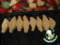 Придала форму пирожка и уложила на противень, швом вниз, плотно друг к другу. |