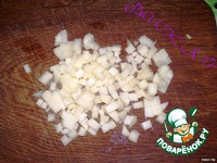В полученную жидкость добавляю стакан кипятка, довожу до кипения. Картофель режу мелкими кубиками, отправляю в кастрюлю, убавляю огонь, чтобы потихоньку кипело |