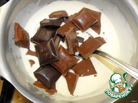 В маленькой кастрюле нагреть сливки (200мл.)до слабого кипения и снять с огня.