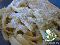 Смешиваем пасту с кремом, выкладываем в тарелку, посыпаем сверху тёртым сыром "Пармезан". И приятного аппетита!! |