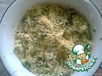 Готовим начинку. Для этого сыр натираем на мелкой терке, мелко нарезаем лук и перчик. Перемешиваем. |