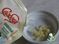 Чеснок выдавить через давилку и смешать с майонезом. Заправить салат. |