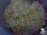 Все ингредиенты смешать - рис с мясом и зажаркой. Добавить кукурузку |