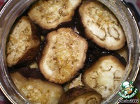 Подготовленные баклажаны укладываем в банку слоями и каждый слой слегка присаливаем и поливаем заправкой из чайной ложечки. |