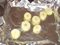 Проделываем то же самое с оборотной стороной и обкладываем яблоками. Загибаем борта фольги. |