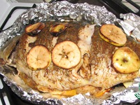 Описание: Запеченный в яблоках карп - вкуснейшая, нежнейшая, диетическая рыба, особенно, когда свежая (в смысле - живая до вашей покупки).