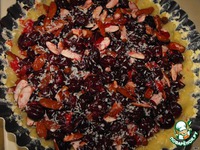 Сверху выложить начинку и посыпать кокосовой стружкой. |