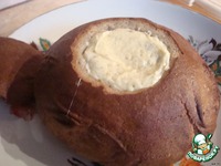 У хлебного каравая срезать верхушку в виде крышечки. Мякоть из хлеба удалить (воспользуйтесь вилкой) |