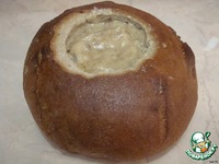 Посыпать сверху тертым сыром, накрыть хлебной крышечкой и отправить в духовку минут на 20. (Противень смазать растительным маслом.) |