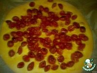 Разместить помидорки на тесто и выпекать в предварительно разогретой духовке примерно 15 минут, при 230 градусах. |