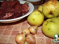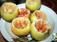 Яблоки помыть, вырезать сердцевину. Срезать верхушки яблока, они послужат нам крышками. Куриную печень вместе с луком измельчить блендером. |