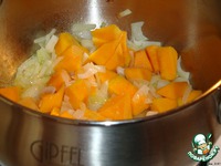 Слегка обжарить лук и тыкву, добавить чечевицу ,залить кипятком и перемешать. Накрыть кастрюлю крышкой и готовить на медленном огне минут 7-10. |