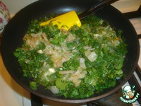 Нашинкуем мелко лук,петрушку,укроп,кинзу .На сковороде растопим сливочное масло,обжарим лук и добавим всю зелень.Посолить,поперчить и слегка обжарить. |