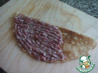 Выкладывать фарш тонким слоем на 2/3 блинчика так, чтобы один "треугольничек" оставался свободным |