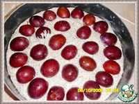 поверх него сливы, (разрезать пополам, вытащить косточку). |