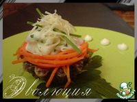 Описание: Нежные грибные тарталетки с воздушной картофельной начинкой… И для большей пикантности – корейская морковка…