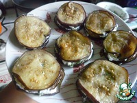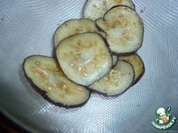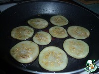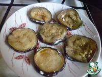Баклажан нарезать кружочками (не очень толстыми и не тонюсенькими), обжарить. Если баклажан горчит - предварительно пересыпать его солью, оставить минут на 20, после чего сполоснуть водой. |