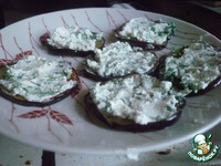 Я сделала так: три слоя баклажана, перемежающиеся двумя слоями сыра. При желании можно украсить чем-нибудь, например помидоркой черри. Я не украшала) |