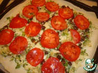 Сверху на начинку выложить помидоры, нарезанные кружками. Посыпать орегано. |