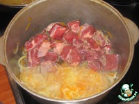 Лук реже полукольцами( хочу сказать , что в таком мяске лука много не бывает) морковь натираем на крупной терке. Все обжариваем на растительном масле до золотистого цвета. |