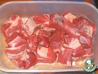 Небольшое отступление !!!! Я готовила совсем немного ,мужу на один раз!!! Но все продукты указала как минимум для 3 порций!!! Мясо режем кубиками среднего размера , немного поперчим, но не солим |