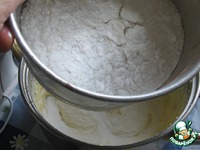 Ввести муку с крахмалом и разрыхлителем (просеять!) |