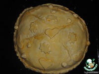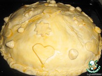 На поверхности курника защипываем грани по линиям радиальных надрезов. Делаем из теста украшения, укладываем их на курник и смазываем его яйцом. |