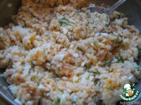 Для рисового фарша отварить рассыпчатую рисовую кашу, добавить в нее рубленое вареное яйцо, зелень, масло, соль и перемешать. Я дополнительно добавила еще сладкую паприку. |