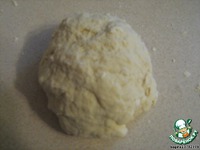 Раскатываем из теста вторую лепешку. Делаем в ней 4 радиальных надреза и накрываем ею верхний пласт. Края верхней и нижней лепешек защипываем у основания. |