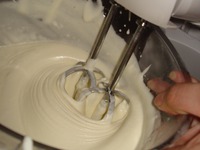 Желток растереть с сахаром. Белок взбить венчиком. |