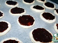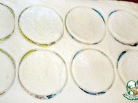 -Раскатайте слоеное тесто на посыпанной мукой поверхности толщиной примерно 0,5 мм -При помощи небольшого стакана или формочки вырежьте из теста круги диаметром 5-6 см |