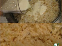 Перемешать лук, рис, рыбу перемолотую, перец и соль |
