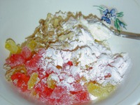 Добавляем измельченные орехи, мелко нарезанный мармелад и аккуратно перемешиваем. |