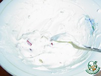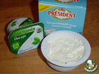 Для приготовления крема взбиваем сливочный сыр с йогуртом, добавляя сахарную пудру и ванильный сахар. |