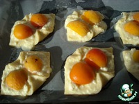Мягкое творожное тесто со сливочно-абрикосовой начинкой.