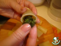 Начиняем наши макароны зеленью. Не надо очень плотно. |