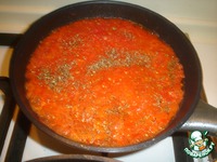 Помидоры, чем больше-тем лучше, натрем на терке и обжарим на сковороде минут 7-10. Добавим орегано(обязательно). Поперчим,посолим. |