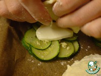 раскатываем или растягиваем посыпапая мукой в кружочки чуть большие по размеру чем круги из кабачка, накрываем ... |