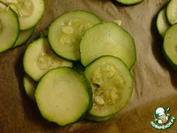 Нарезанный кабачок солим и перчим. Выкладываем кружки кабачка на противень, застеленный бумагой для выпечки, в форме 4 кругов внахлест. |