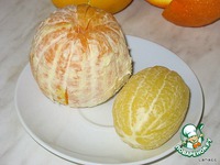 Лимон и апельсин почистить от кожуры и разломать на дольки. |