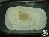 Соль 1,5 ч.л., сахар 2,5 ч.л. (в разные уголки ведерка) и, конечно, просеянная пшеничная мука 600 гр (я покупаю "Еленовскую" для выпечки хлеба :)) |