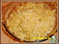 Картофель почистить и порезать "кубиками". Смешать картофель с сыром (очень вкусно взять 150 г вышеуказанных сыров + 50 г сыра Рокфор) и соусом. |