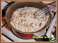 Когда соус начнет густеть, добавляем порезанные грибы и варим (помешивая) еше 1 минуту. Снимаем с огня. |