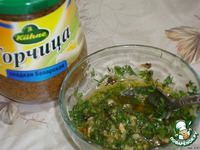 ЗАПРАВКА Чеснок измельчить, укроп мелко порезать. В сок лимона добавить горчицу, чеснок, укроп и оливковое масло ( я соединила масло от сыра с обычным оливковым). Размешать и заправить салат. |